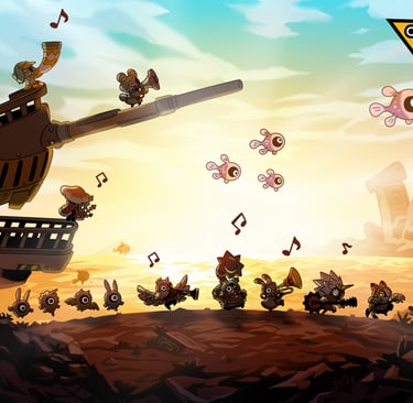 Visualmente, Ratatan apuesta por lo vibrante y legible: criaturas de diseño chispeante, fondos coloridos y una iconografía muy clara para no perder el pulso entre tanto barullo. El resultado es caótico pero entendible; rara vez te sientes injustamente castigado por no “ver” lo que ocurre en pantalla. El estilo visual único ayuda a distinguirlo de su inspiración, alejándose del minimalismo de Patapon y logrando personalidad propia.