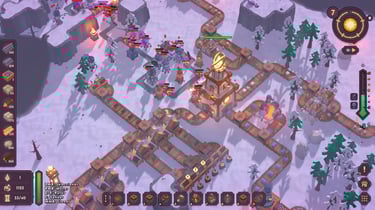 El loop básico parece más simple de lo que es. Construyes extractores de madera y piedra, los conectas mediante cintas transportadoras a tu almacén central y, con los materiales disponibles, levantas torres defensivas. Ballistas, catapultas, torres de fuego... cada una con su cadencia, rango y especialidad. Los enemigos llegan en oleadas y encontrarás días apacibles donde los ataques son ligeros y controlables, y noches donde aparentemente todo lo que podía ir mal sucede al mismo tiempo. Es en esas noches donde descubres si tu estrategia está realmente optimizada o si ha sido un fracaso.